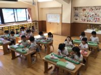 本日は鍵盤ハーモニカでメリーさんのひつじを練習しました。前回よりも指番号を覚えている子が増え、自分で楽譜を見ながら挑戦する姿も見られました!その後はお当番替えをしました。自分達でグループ名を決めたり、お当番カードを話し合って作ったりしました!