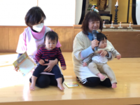 避難訓練は、地震の後の火事を想定したもので、布団が被さって、びっくりしたお友だちもいましたが、その後は、落ち着いて避難できていました。お散歩では、それぞれ見つけた動物や、見たい車を言い合ったりして賑やかなお散歩でした。
