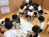 今日は体操教室の前に初めての小さいレゴと塗り絵で遊んでから行きました。体操教室では、きく組として最後で、マットと鉄棒、フープをしました。さくら組の運動会で拍手をもらえるように今から頑張って練習する子ども達です。