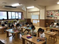 今日は折り紙でてんとう虫を折りました。端を揃えて折るのが上手になってきた子ども達です。体操教室では、跳び箱と鉄棒とマットの全部をしました。少しずつさくら組さんに向けて難しい技を教えてもらい楽しく頑張っています。