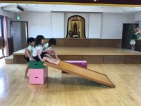 今日は、本堂前で遊びました。花や虫を観察したり、みんなでいろいろな鬼ごっこをしたりして遊びました。その後は体操教室で組み体操の練習をしました。2人ペアでする技は難しいですが「さくら組最後の体操教室だから!」と集中して頑張っていました。