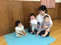 4月生まれのお友達のお祝いをすることができました。その後は、お部屋に戻りボールや小さなトンネルやすべり台を出して遊びました。保育者がボールを転がすと目で追いかけたりハイハイで追ったりして活発的に遊ぶことができました!