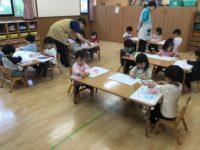 ひまわり組の4月生まれのお友だちは2人でした。大きな声で「おめでとう」とお祝いすることができましたよ!先生からの出し物「私は誰でしょう?」のクイズではヒントをよく聞き、わかったものを答える子どもたちでした!