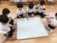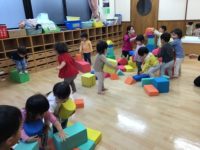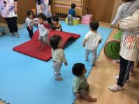 マットの山がとても大人気で歩きやハイハイで何度も繰り返し挑戦することができました。ダンボール車も出して自分で出入りできるお友達が増え、嬉しいそうでした!雨の日でしたが、お部屋で思いっきり体を動かしてお腹が空いてお弁当・給食をしっかりと食べることができました。