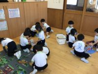 本日の英語教室ではアルファベットの歌の一部を隠し、隠されたものは言わずに歌うゲームや2人ペアでやる手遊びをしました。アルファベットの歌は分かっていても歌ってしまい、大盛り上がりでした!手遊びは難しかったようで、、また挑戦しようと思います!