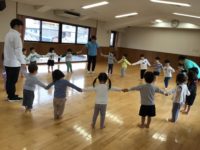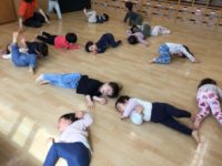 今日は、体操教室がありました。みんなで手を繋いで輪になってから、準備体操をしたら、マットでコロコロ転がってポテトになったり、フープの上をグーパージャンプをしたり、先生のお話をしっかり聞きながら、よく体を動かしました。
