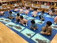 今日は筆で像を描きました。「体はどのぐらい大きいのか」「耳はどんな形か」などみんなで考え話しながら書き進めました。その後はピロティに行き、みんなでゲームをした後にシャボン玉やおもちゃで遊びました。