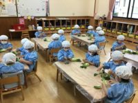 今日はきく組で最後の食育(ちんげん菜ちぎり)がありました。5月からたくさんの野菜に触れてきて苦手な野菜を食べられるお友達が増えました。食育の後は、お部屋でカプラをして遊びました。お友達と一緒に作って遊び楽しむ姿がありました。