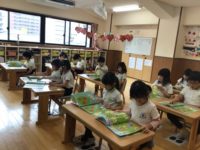 今日はきく組最後の月刊絵本を読みました。ひなまつりや、きく組さんの1年間で出来るようになった事を振り返りながら読みました。体操教室では、さくら組さんへむけてフープの練習と、跳び箱の練習をしました。