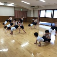 今年度最初の体操教室では準備体操の後2人組で腹筋や背筋をしました。鉄棒では前回りの練習を、マットでは前転をして手をマットに付けずに立つ練習をしました。整列や待機時の姿勢もこれから意識して取り組んでいきます。