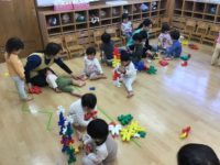 本日はお部屋でうさぎブロックと車で遊びました!まだまだひまわりのお部屋にドキドキしているお友だちも多いですが、少しずつお友だちとおもちゃで遊んで楽しむ姿が見られました。貸して欲しいおもちゃを「貸して〜」とお友だちに頑張って伝えてみる子もいましたよ!